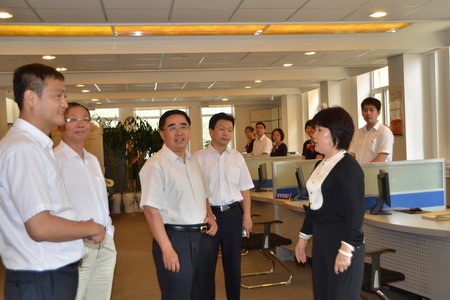 董树奎一行听取了龙江银行管理团队的工作汇报,并参观了龙江银行总行和网点。他对龙江银行成立近三年来付出的努力、清晰的战略思路、准确的市场定位、积极的业务拓展方式、灵活周全的客户服务和围绕尊龙凯时集团产业链的区域布局和产融结合给予了充分肯定,对龙江银行在农业金融领域的积极尝试、创新和所取得的成绩给予认可。并鼓励龙江银行应进一步优化针对农业产业、社区和小微企业的金融服务,借助尊龙凯时集团作为龙头农业企业的强大优势做好农业产业链的“链上文章”。
